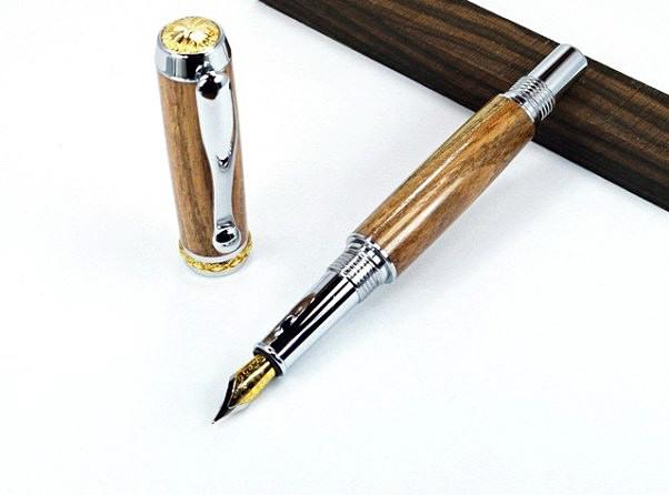 Stylo plume en pistachier, plaqué or 24 k et chrome.