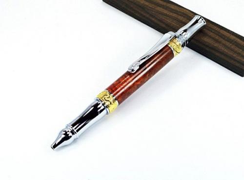 Stylo à bille en loupe d'amboine, plaqué or 24 k et chrome.